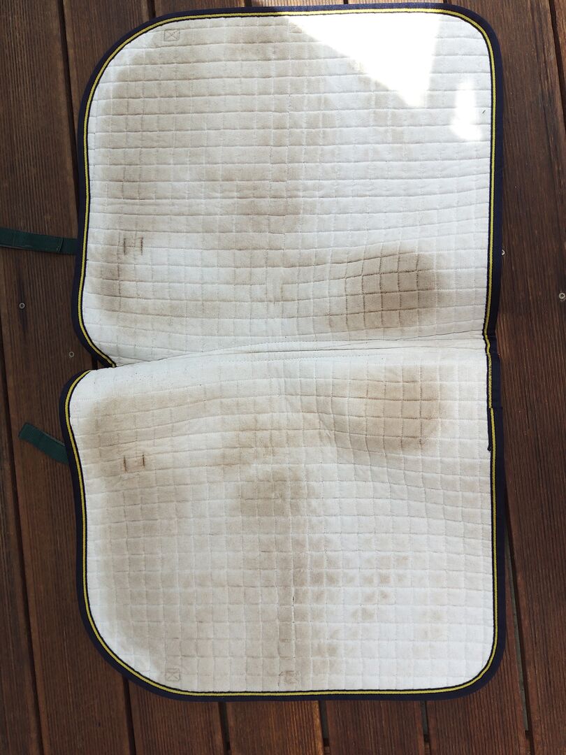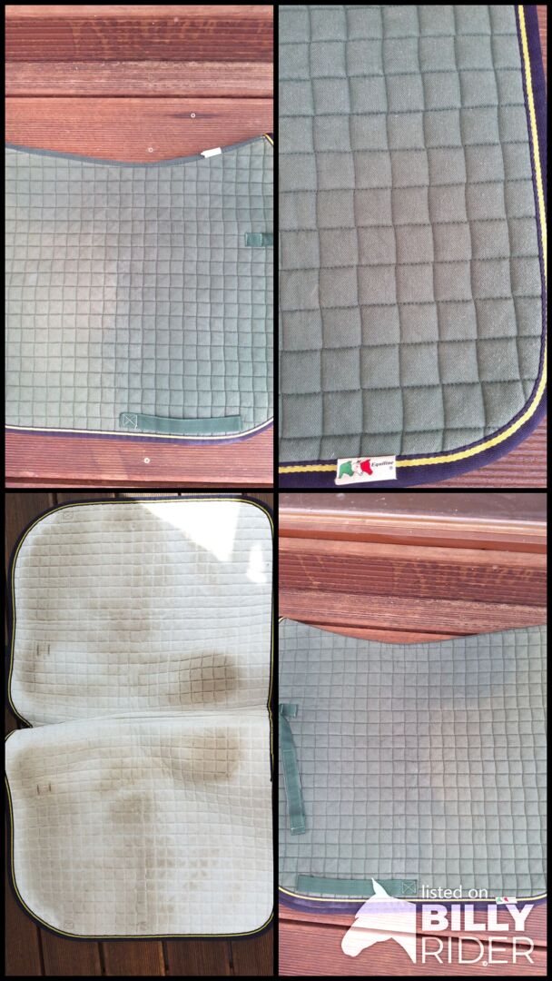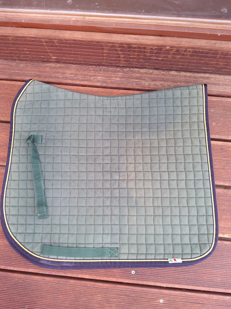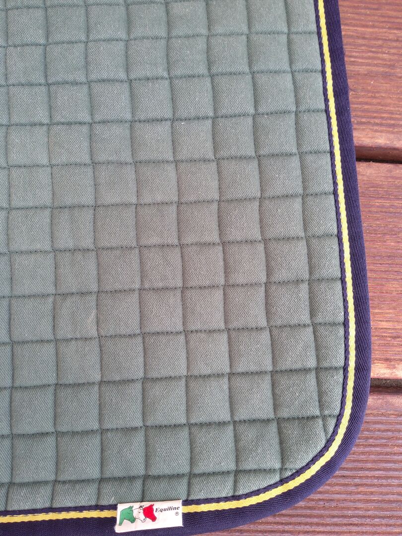 Zadeldekje Dressuur WB van Equiline groen - Groen zadeldekje van Equiline in WB dressuur, bies in donkerblauw/ geel.