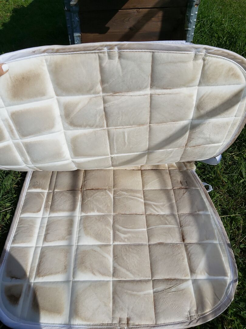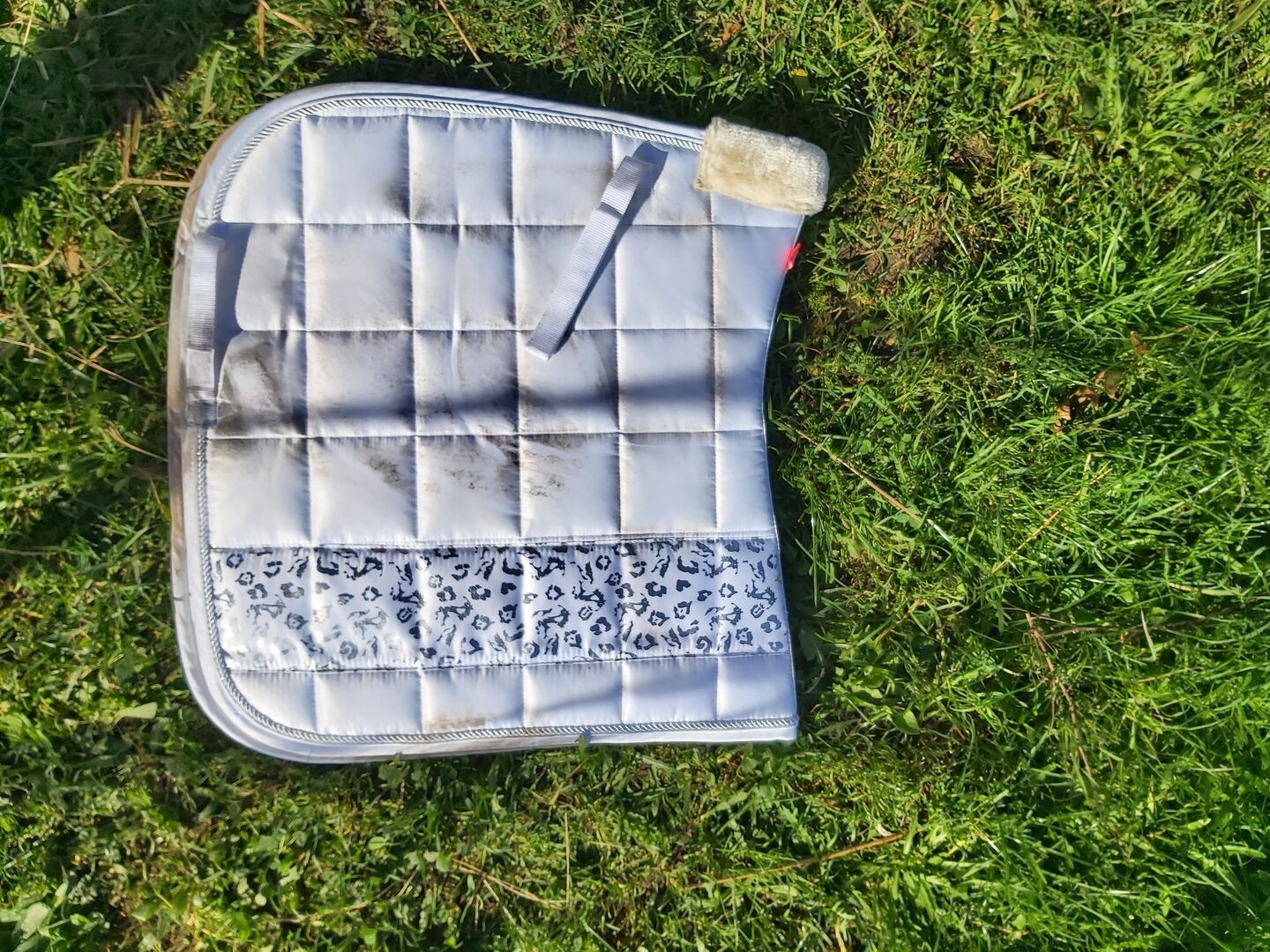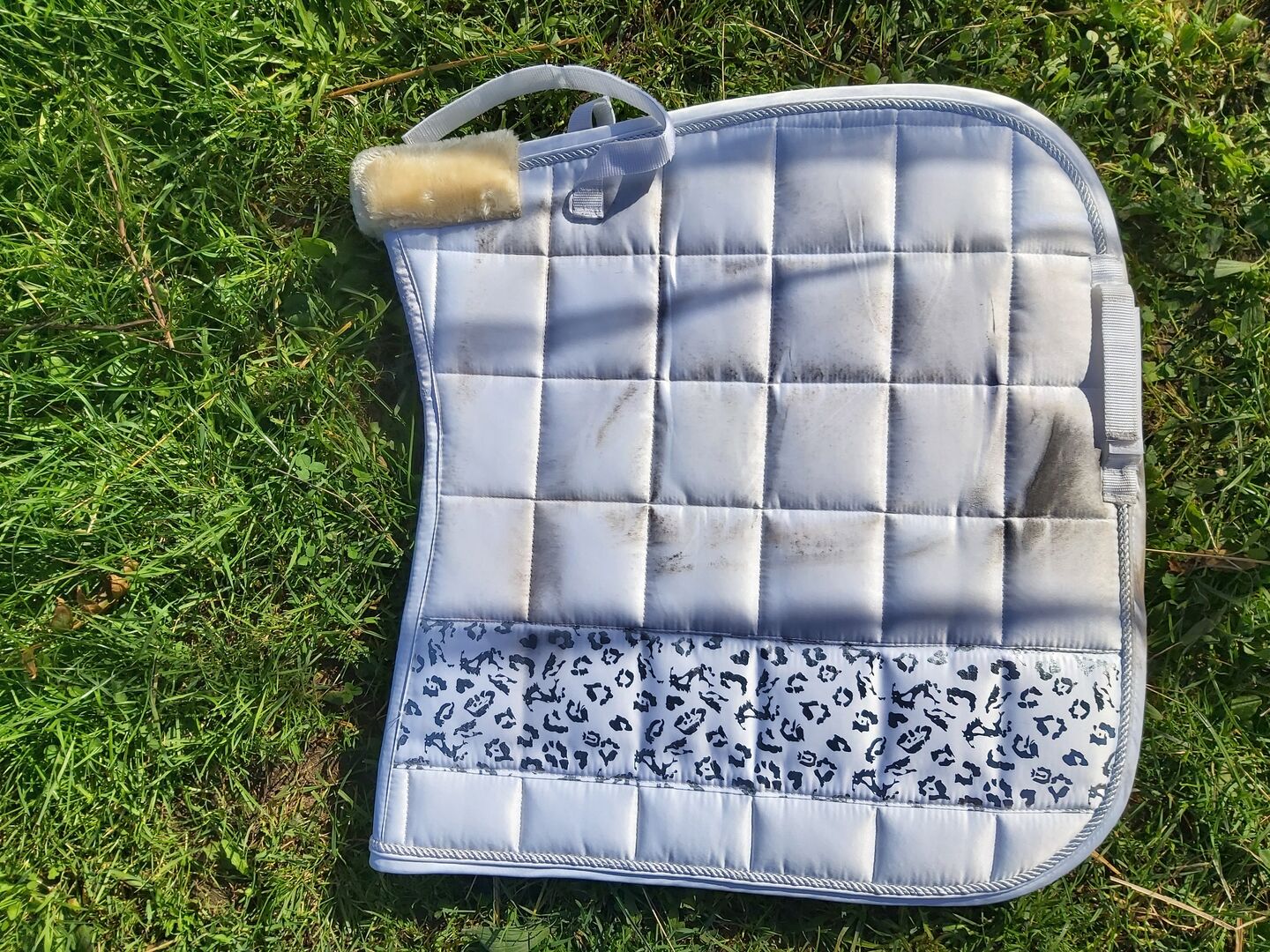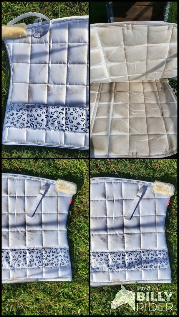 Zadeldekje + set van 4 bandages Imperial Riding wit - Set van zadeldek en 4 bandages Weinig gebruikt, helaas is het zadel eraf gewreven. De artikelen zijn ongewassen