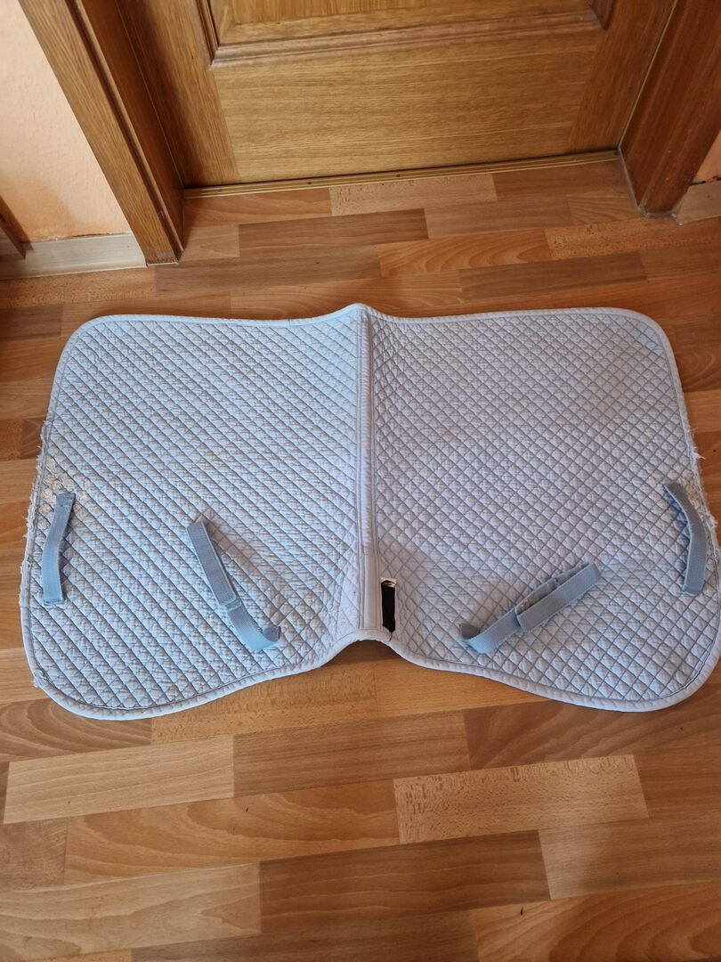 Zadeldekje VS - Ik verkoop een zadeldek in lichtblauw. Het heeft al een paar tekenen van slijtage.
