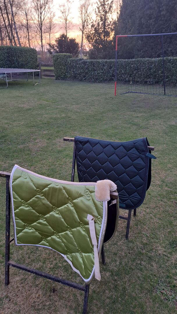 Zadeldekjes en lamsvacht onderlegger te koop (vb) - Ik verkoop verschillende zadeldekjes en accessoires in maat WB, omdat ik helaas moest overstappen op een westernzadel. Alle zadeldekjes zijn in nieuwstaat en zijn slechts één keer op mijn paard uitgeprobeerd. Als je vragen hebt over de producten kun je altijd contact met me opnemen. Over alle prijzen valt te onderhandelen.