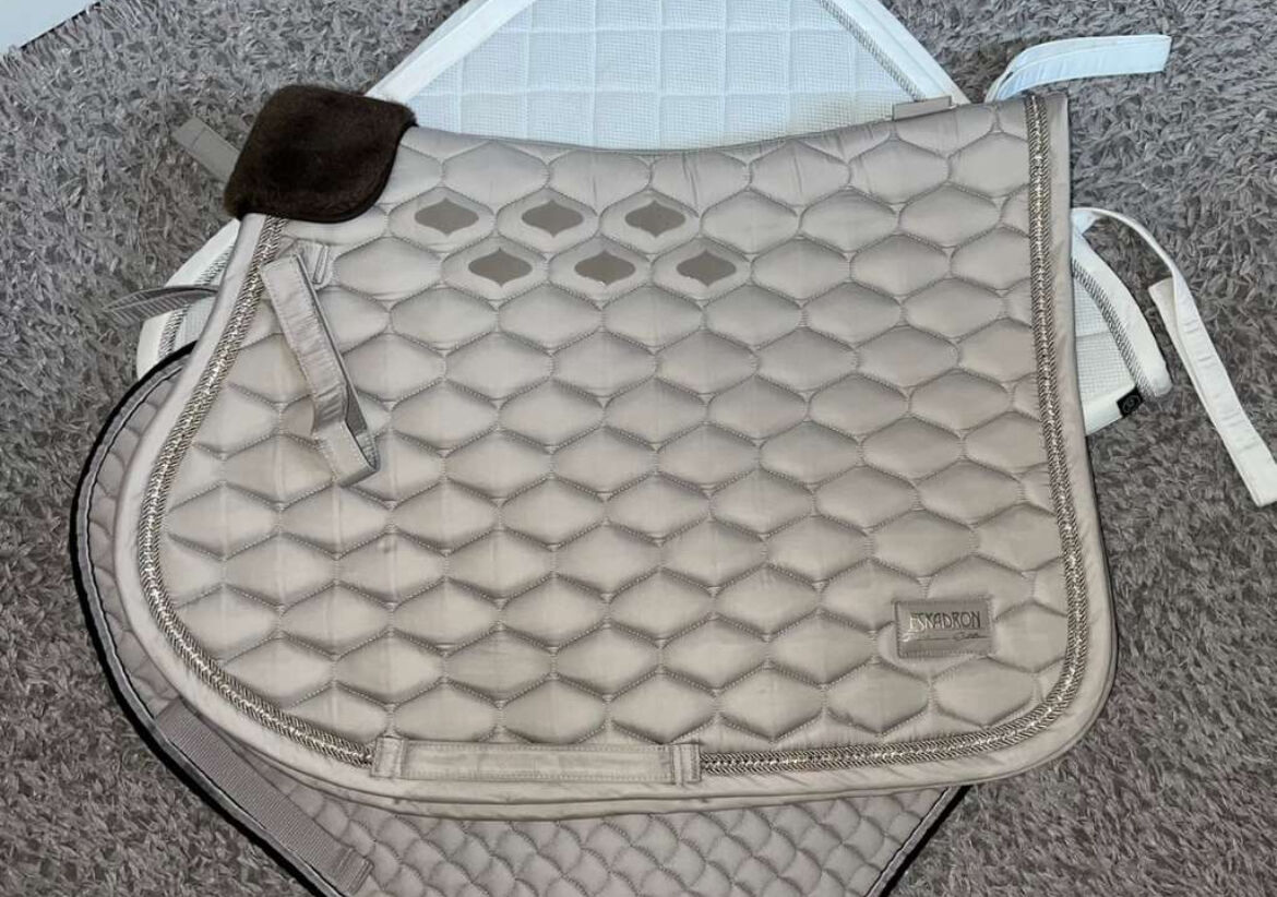 - Eskadron Platinum zadeldek Glossy Crystal Grey, VS (lichte gebruikssporen op de klittenbandsluiting) Gekocht voor €80, verkocht voor €60 - Eskadron Pure zadeldek Mesh Stripe White, DL (lichte gebruikssporen zie foto) Gekocht voor €80, verkocht voor €40 - Equestrian Stockholm Zadeldek Ice Blue, PD (helemaal nieuw) Gekocht voor €90, verkocht voor €70
