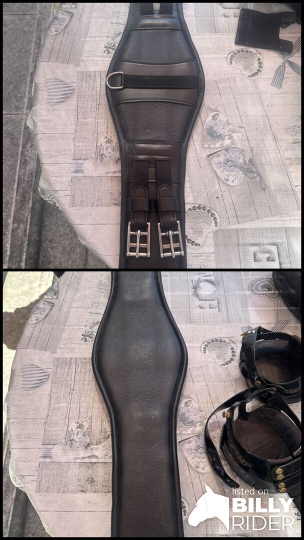 Zadelriem 60cm - Ik heb de singel op Eurocheval gekocht en een keer omgedaan, helaas is hij niet geschikt voor mijn paard. 60cm, gemaakt van kalfsleer, superzacht en breder bij de buik voor een betere drukverdeling. De singelgespen zijn elastisch, maar nog steeds strak na één keer gebruiken.