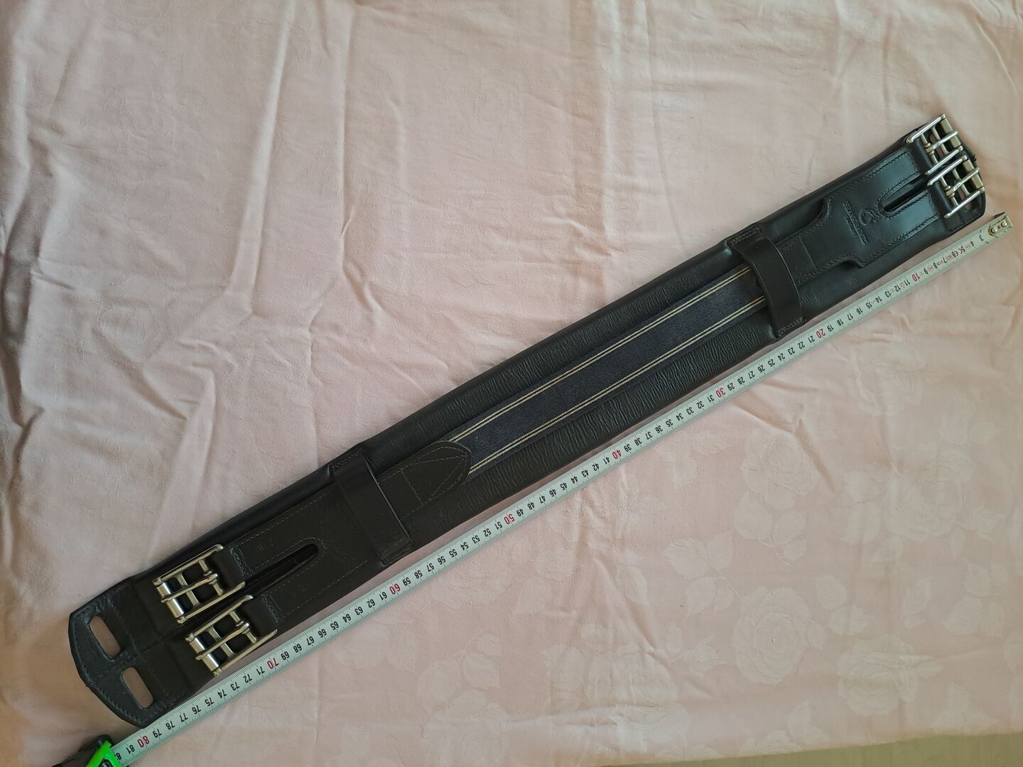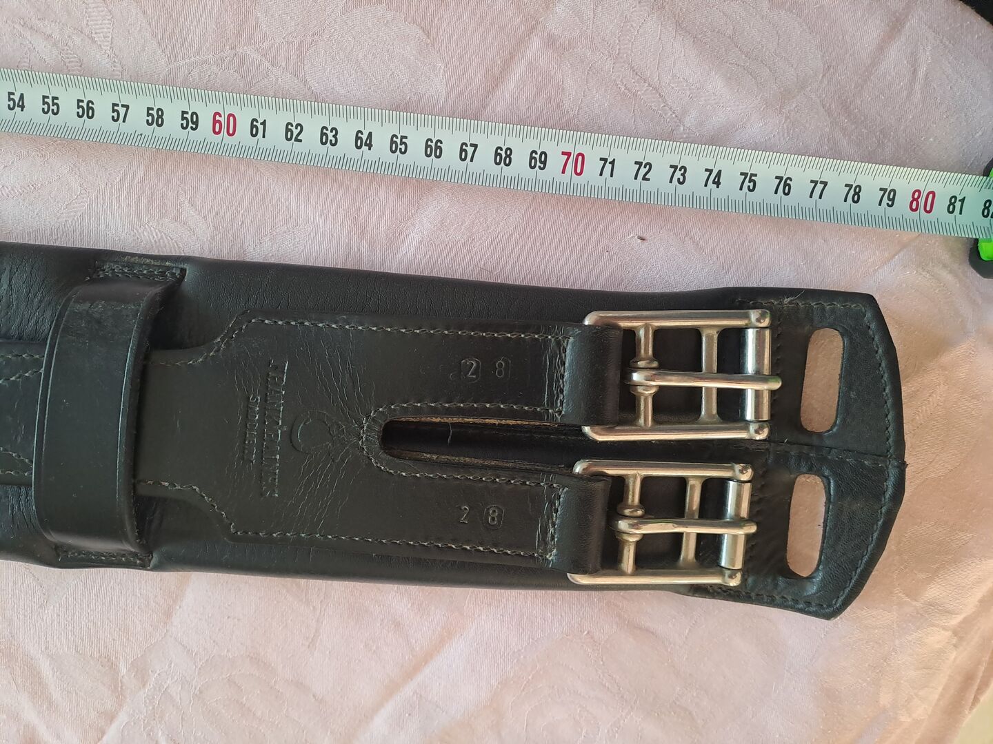 Zadelriem echt leer korte singel 80cm - Leren riem goed onderhouden 2x gebruikt elastische riemen (gemaakt door zadelmakerij Frank Baines GB) passend bij het dressuurzadel dat ik verkoop