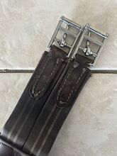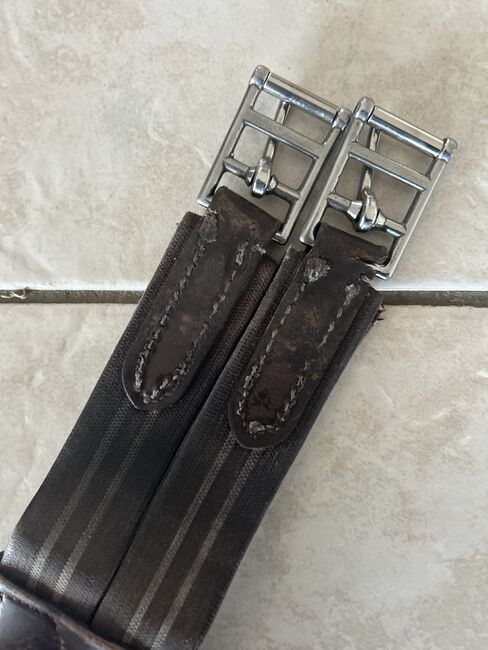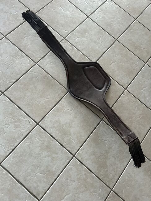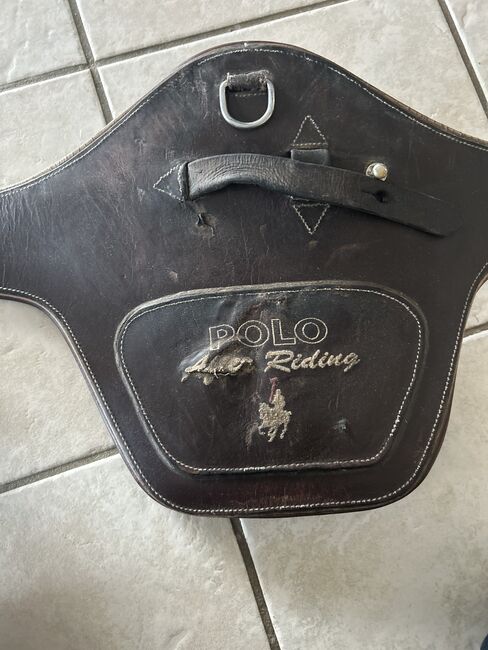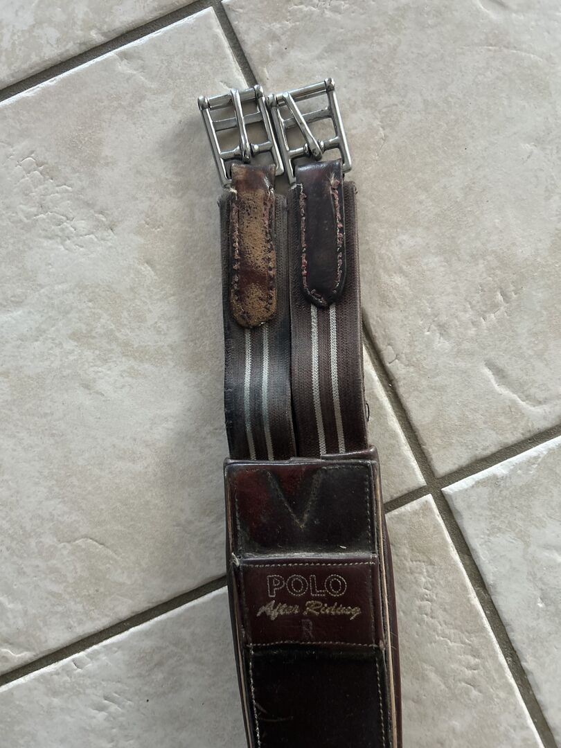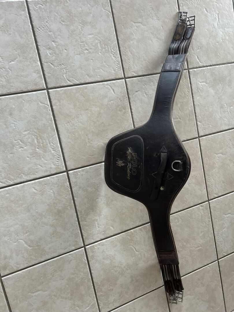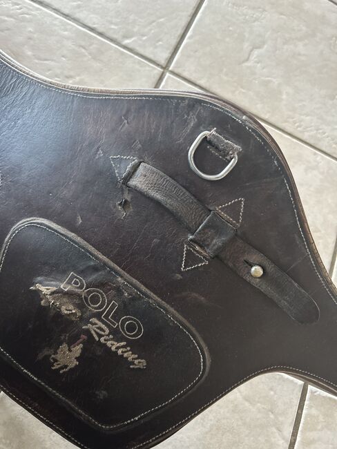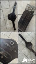 Zadelsingel - Springsingel te koop in lengte 130 Helaas is de buikflap wat beschadigd, zoals op de foto te zien is, maar biedt nog voldoende bescherming Verder is het leer al wat versleten op één punt van de gespen (zie foto) maar dit beperkt de functie van de singel momenteel niet