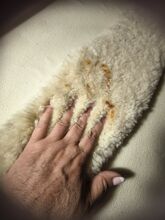 Zadelsingelbeschermer lamsvel - Ik verkoop hier een bijna nieuwe lamsleren singelbeschermer helaas heeft het al roestvlekken op de vacht van de fabriek, dus ik heb het goedkoper (B goederen)