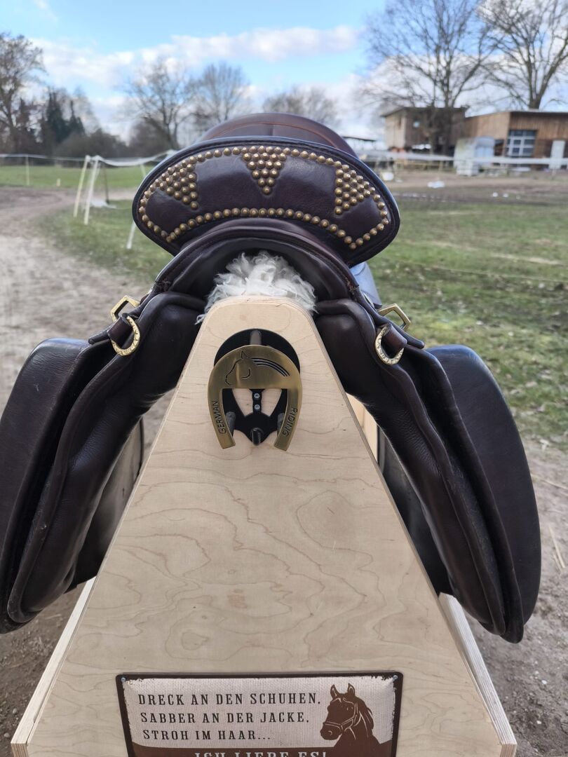 Zaldi Lusitanus bruin barok zadel - Te koop hier bovenstaand zadel in donkerbruin. Laag zadel. Zitoppervlak 17,5 inch. Elastische singelstoten. V-singel, lange singelstoten voor korte singel. Het zadel is zeer comfortabel en zeer goed onderhouden. Speciale kenmerken zijn de galerij en de uitsparing voor meer schoudervrijheid. Het heeft ook multi-positie panelen en een U-vormige slokdarmplaat, de kamerbreedte is ca. 34 en de breedte van het wervelkanaal is ca. 9 cm. Ik heb het zadel in 2022/2023 gebruikt gekocht bij Thiel Sattelkonzepte die het ook altijd op maat kan maken. Voor verdere vragen kunt u schrijven. Ik accepteer graag reële prijssuggesties. Het zadel wordt alleen verkocht omdat mijn paard helaas is overleden.