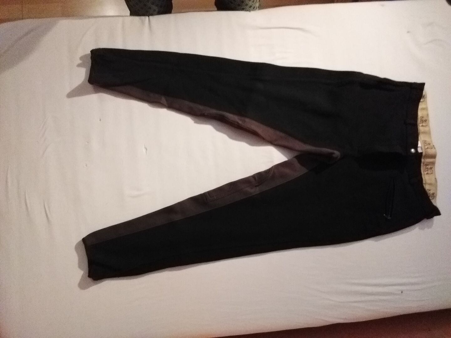 Zaldi rijbroek - Rijbroek van Zaldi in maat 50, zelden gedragen, te koop 95% katoen , 5% lycra , goede kwaliteit machinewasbaar op 30 graden zwart met chocoladebruine inzet aan de binnenkant binnenkant dij , een klein sleutelzakje en een zakje met rits aanwezig evenals klittenbandverkleiners aan de voetuiteinden