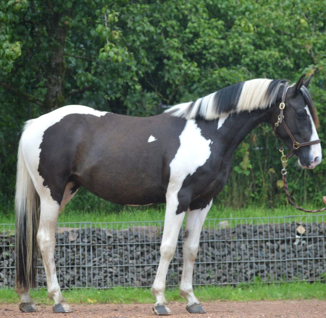Zeer schattige, veelzijdige Paint/Pinto merrie - Locatie: 66625 Nohfelden Johanna is een 5-jarige Paint/Pinto merrie voor wie het leven serieus gaat worden. Ze is gewend aan het zadel, hoofdstel en ruitergewicht en is nu klaar voor verdere training. De merrie is zeer correct gebouwd met een sterk fundament en grote hoeven. Met haar fantastische zwarte piebald vacht is ze een echte blikvanger. Johanna heeft een zeer gevoelig karakter en heeft een verzorger nodig die ze kan vertrouwen. De merrie is op zoek naar iemand die geduldig en rustig met haar blijft werken en van haar een geweldig rijpaard maakt. Ze is heel veelzijdig. To the seller's offerlaunch