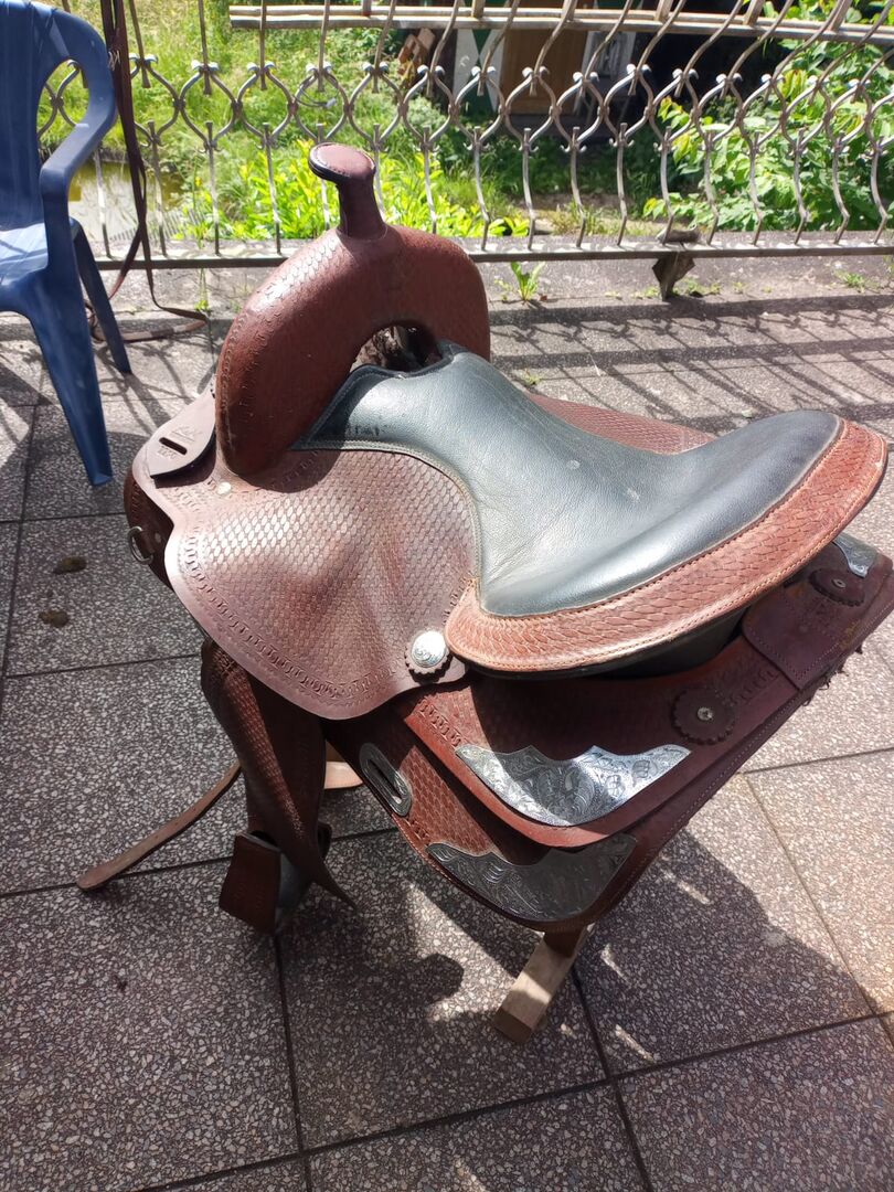 Zo goed als nieuw westernzadelleer van A & M 1170 - Ik verkoop een nieuw westernzadel van A&M model 1170! Het zadel is nooit gebruikt en heeft een tijd droog in de garage gelegen! Aangezien het in de toekomst helaas niet gebruikt zal worden, moet het nu verkocht worden! Als je het zadel ophaalt bied ik je de mogelijkheid om het binnen twee dagen terug te brengen (als het niet past) en je geld terug te krijgen! Voor maten zie de maten op de foto's! Verzending geen probleem 10€! Als je vragen hebt kun je me bellen op 0171-5048727 of via WhatsApp!