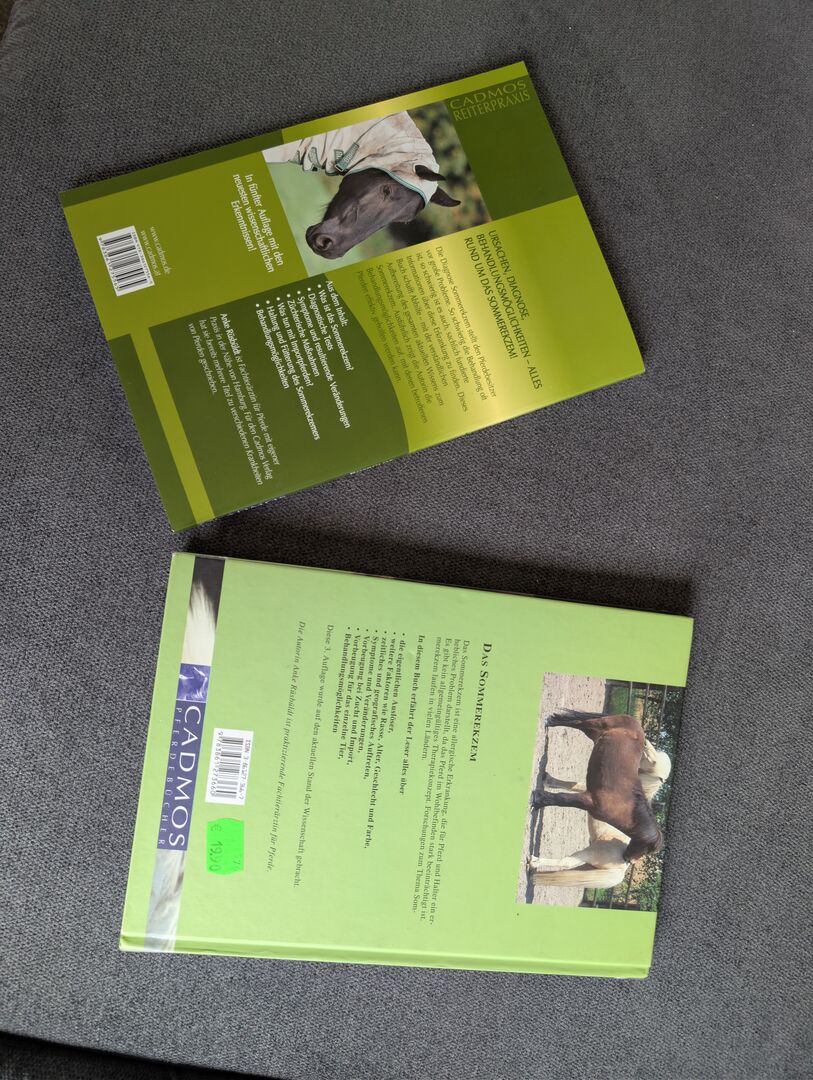 Zoete jeuk - Dit zijn de boeken "Zomereczeem: herkennen, voorkomen, behandelen" van Anke Rüsbüldt. Auteur: Anke Rüsbüldt Onderwerp: Zoete jeuk bij paarden (een allergische huidziekte veroorzaakt door insecten) Inhoud: Informatie over het herkennen, voorkomen en behandelen van de ziekte Uitgever: Cadmos Taal: Duits Disclaimer: Deze informatie is alleen voor educatieve doeleinden en vormt geen professioneel veterinair advies. U dient altijd een gekwalificeerde dierenarts te raadplegen als uw huisdier gezondheidsproblemen heeft.