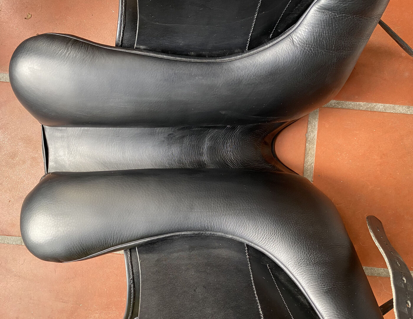 Zomer dressuurzadel - Dressuurzadel Musica Classic met semi-lage zit, 18". De Musica maakt indruk met zijn zadelkleppen bekleed met de beste koeienhuid en de kniepositie met lagere kinband. Volledig flexibele kunststof boom met slokdarm, beste geselecteerde koeienhuid en een zadel dat op elk moment aan de eisen van het paard kan worden aangepast.