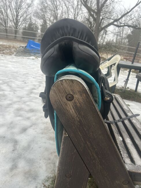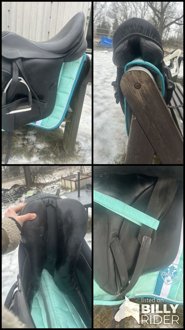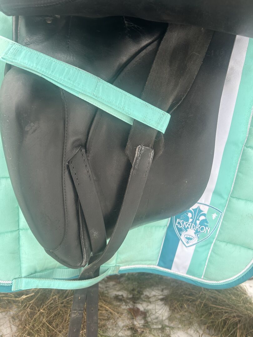 Het heeft normale gebruikssporen, ik weet niet precies welk model het is omdat ik het van mijn trainer heb gekregen, dus ik kan niet zeggen hoe oud het zadel is.