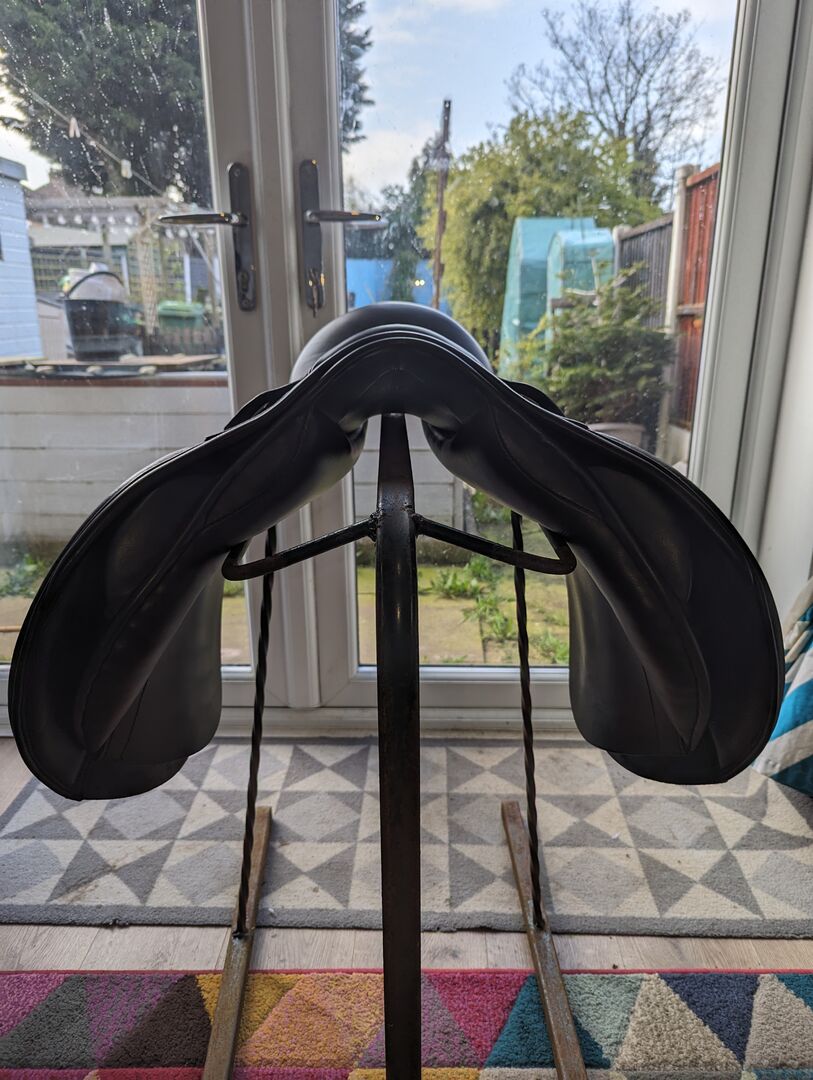 Black country GPX 16.5" wide fit in Havana vintage brown. Was purchased by my saddler second hand for me in 2020 . It's from a template was MW has been widened to more a wide now but could be taken back in if required. It has a sprung classic tree. In excellent condition for age. Just some goth marks on bottom flap, brushing from stirrup leathers and a small mark on the piping of the cantle .