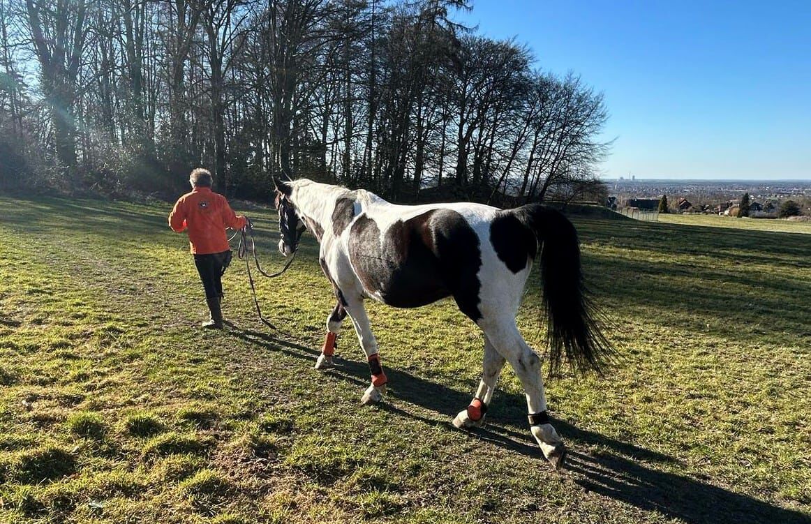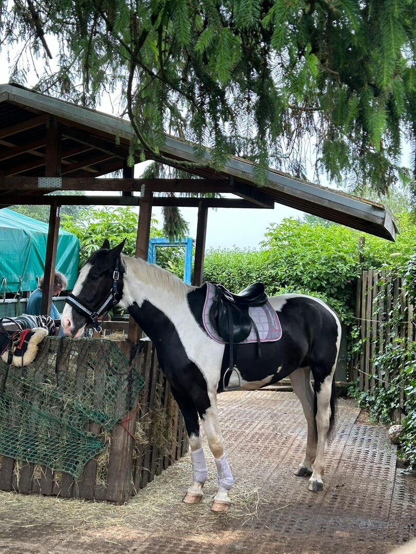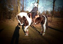 Dyngus (Pablo) - een Poolse sportruin geboren in 2019 in de opvallende en zeer mooie kleur zwart pinto. Met een stokmaat van ongeveer 1.70 m en een grootramige, harmonieuze bouw dekt hij ook lange ruiters goed. Hij heeft een complete afstamming, is gezond, PSSM1 n/n getest en zijn kleine aankoopkeuring van juni 2024 was zonder bevindingen. Hij is momenteel viervoetig, maar kan ook zonder problemen blootsvoets worden gehouden. Dyngus is een uitzonderlijk lieve, vriendelijke en mensgerichte ruin in de dagelijkse omgang. Hij is evenwichtig, nieuwsgierig, knuffelig en leert heel snel. Hij vergeeft fouten, is makkelijk te rijden en wordt momenteel zonder problemen bereden door een jongere. Dyngus is ook absoluut ongecompliceerd: Hij is makkelijk te hanteren bij de dierenarts en hoefsmid. In de kudde is hij ranggericht en compatibel met zowel merries als ruinen. Hij leeft in een open stal of box en een aan het ras aangepaste houding met veel beweging en sociaal contact is nog steeds gewenst voor hem. Hij heeft een solide basistraining onder het zadel. Hij is zelfverzekerd in alle drie de basisgangen en in stap, been wijken/zijwaartse bewegingen, voor-achterwaartse wendingen, achterwaarts etc. Dyngus zal verder getraind worden en kent een aantal trail- en werkhindernissen (brug, bell alley, hek, paal doolhof etc.) Hij is bereden in het Engels, maar kent ook het western zadel. Hij heeft veel cross-country ervaring (ook in moeilijk + bergachtig terrein). Hij heeft ook vertrouwen om alleen te reizen. Daarnaast heeft hij een tweepaards rijopleiding gehad. Het bleek dat mennen niet zijn ding is en hem stress bezorgt. Dit is ook de ENIGE reden om hem te verkopen, omdat de eigenaren vanwege hun eigen gezondheid liever koets rijden dan mennen. Voor de rest is het een veelzijdig, getalenteerd paard dat al heeft deelgenomen aan verschillende cursussen zoals dressuur, trail of working equitation en graag het water in gaat. Dyngus is een all-round geweldig paard met het beste karakter, mooie looks en een goed trainingsniveau - een echte partner van het hart voor mensen die op zoek zijn naar een betrouwbaar, makkelijk in de omgang paard dat bereid is om te leren. Meer video's zijn beschikbaar op aanvraag. To the seller's offerlaunch