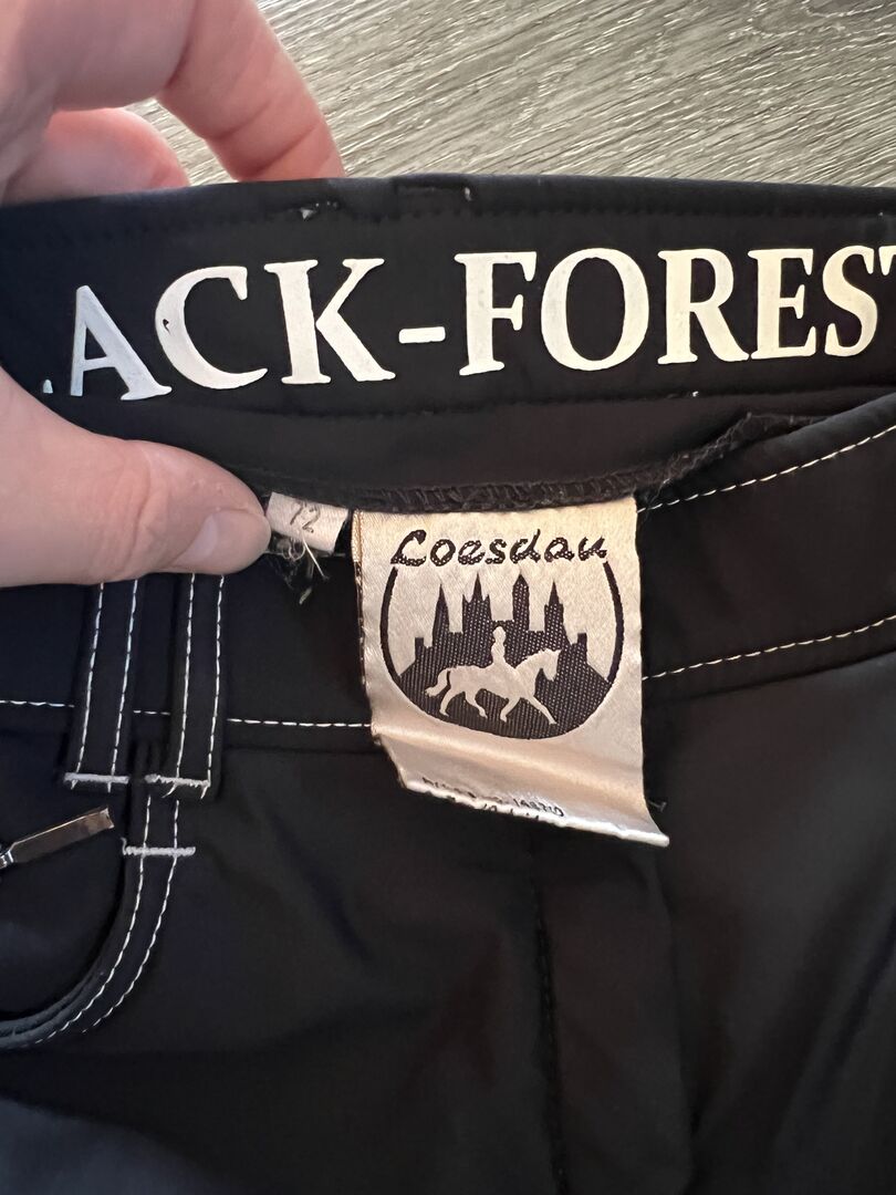 Zwarte Woud softshell rijbroek winter 72 36 lang zwart grip - Ik verkoop een gebruikte rijbroek van Black Forest (Loesdau) die in zeer goede staat is. De rijbroek is perfect voor de winter omdat hij gemaakt is van een zeer warm gevoerde softshell stof. Het gripvaste zitvlak is in topconditie en heeft geen gebruikssporen.